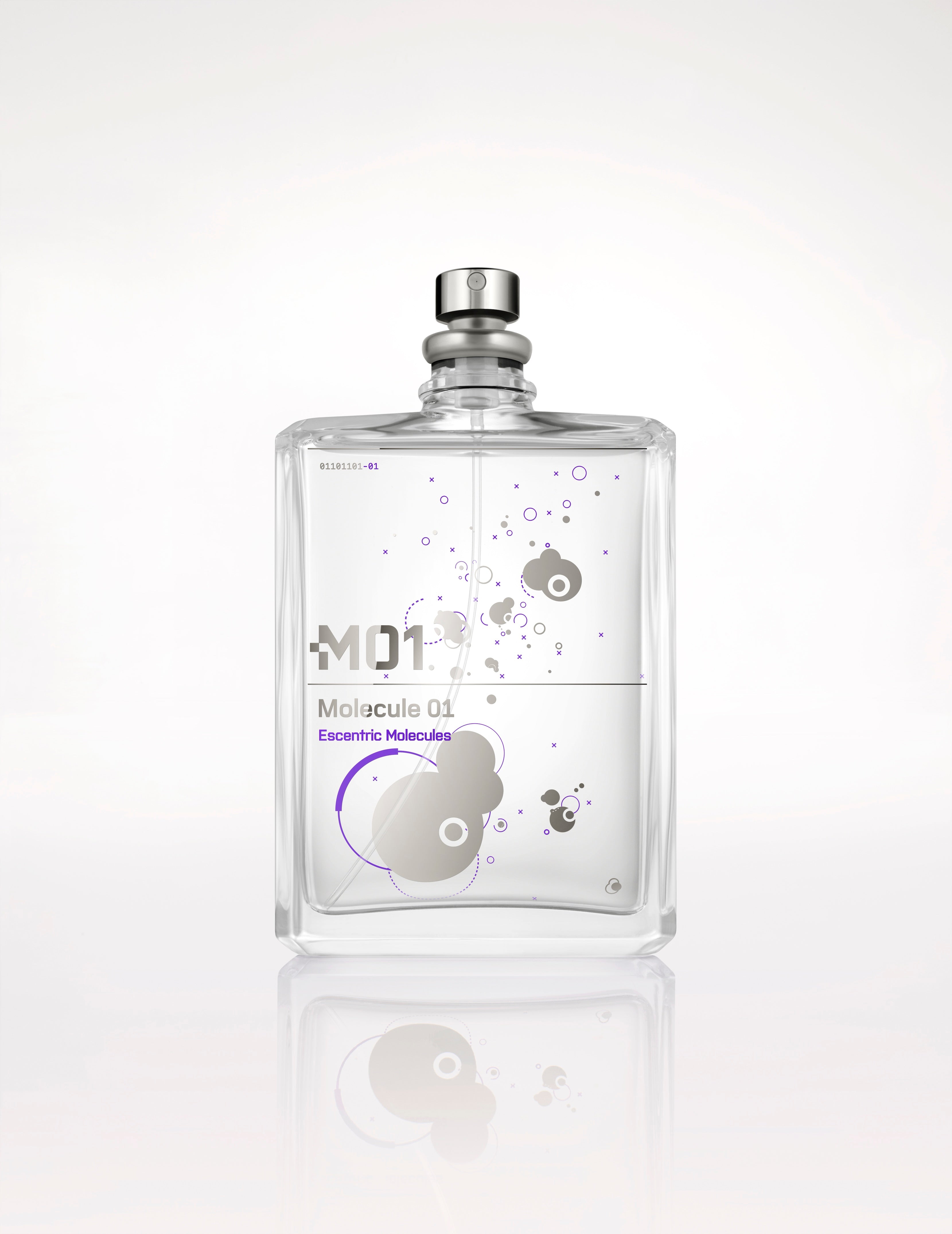 Molecule 01 consists of the molecule Iso E Super pure and singular. Iso E Super is a molecule that hovers close to the skin to create an indefinable aura around the wearer. It is characterized by a hyper-modern cedarwood note with a velvety sensation. Perfumer Geza Schoen explains its allure: "Iso E Super is one of those skin-sexy scents that makes you want to nestle into it. It's comforting, cocooning." Iso E Super has a marked intermittence. To the wearer, it seems to vanish and then re-appear. This is due to the way it bonds with receptors in the olfactory system, only slowly releasing to make way for a fresh charge of the molecule on the receptors. Iso E Super does not exist in nature. It was created in a laboratory at IFF in 1973.