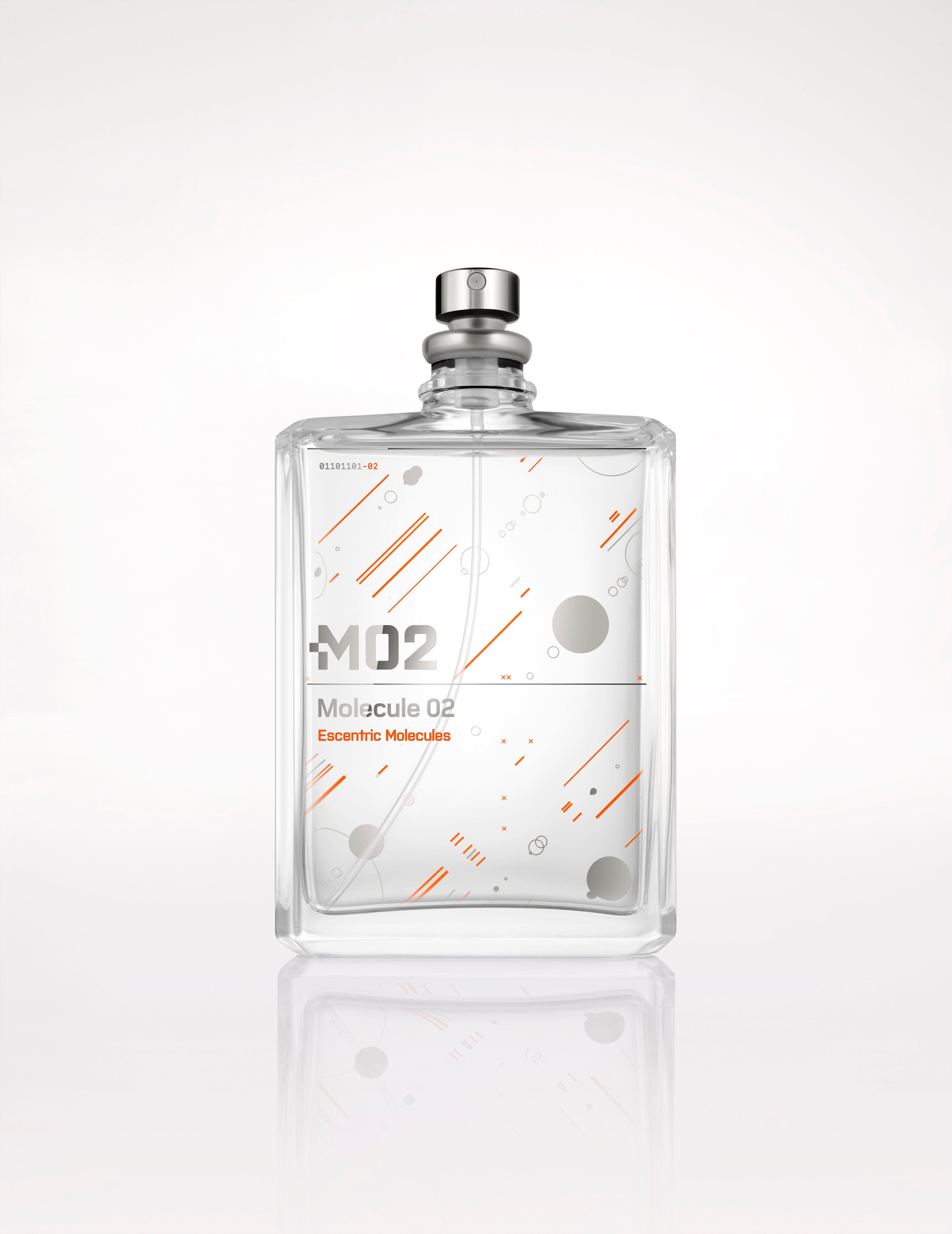 Molecule 02 consists of the molecule Ambroxan, pure and singular. Ambroxan has a subtle, sensual quality with a radiant, long-lasting dry down. It is a crystal with a chemical structure identical to the ambrox derived from ambergris. For centuries, ambergris was perhaps the most prized ingredient in perfumery. It is a somewhat mysterious substance expelled by the cachalot or sperm whale that only attains its fine scent after a long maturation floating in the ocean. Ambergris is rarely found these days, and the 'العنبر' in a modern fragrance will be a lab-created equivalent of some of the aroma molecules that make up its scent. By far the finest of these is the nature-identical molecule, Ambroxan. Ambergris was always valued for its refinement as well as its sensuality. This quality persists in Ambroxan. "It has a fresh, almost mineral quality," says perfumer Geza Schoen, "that lingers into the dry down". Ambroxan was isolated from plant sources in 1950.