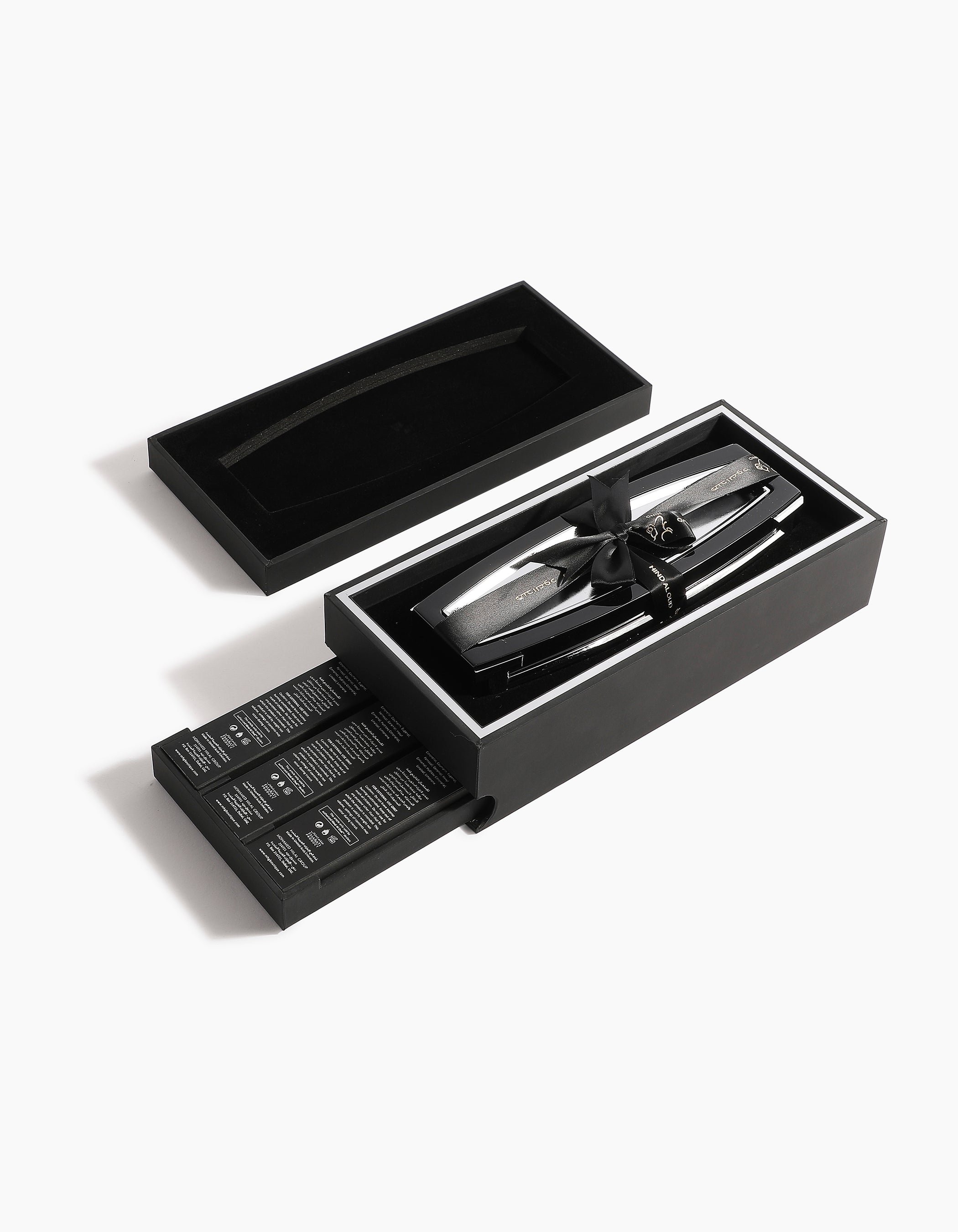 تتضمن مجموعة الهدايا "هوس العود" الفاخرة هذه ثلاثة من العود الأكثر مبيعًا في شكل عصا مضغوطة مصحوبة بمبخرة أنيقة. ينقل "هوس العود" مشاعر الثقة والفخر والأناقة التي نعتز بها بشكل مضغوط لتكون معك دائمًا.