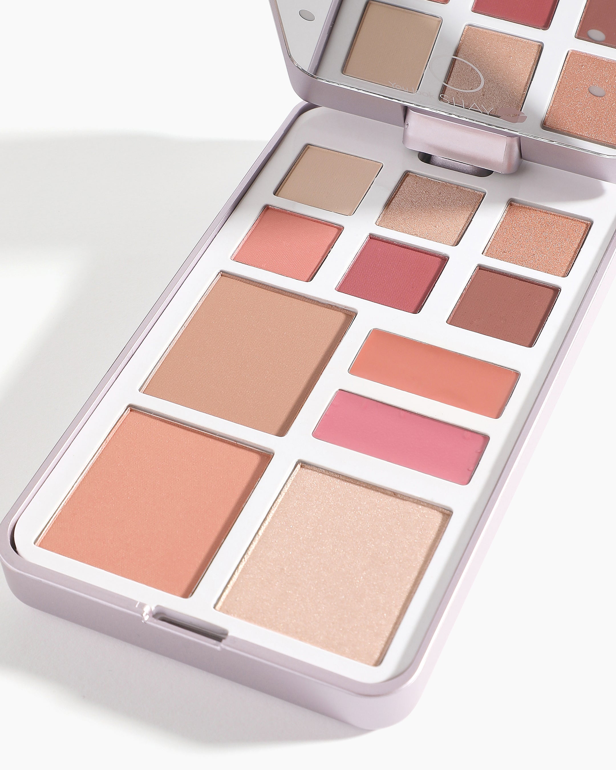 تشتمل لوحة الألوان على ظلال تناسب جميع ألوان البشرة بتركيبات غير لامعة وقزحية مع 6 ظلال عيون ، وأحمر خدود ، وهايلايتر ، وبرونزر ، و 2 أحمر شفاه لإضفاء مظاهر متعددة بمنتج واحد فقط.
