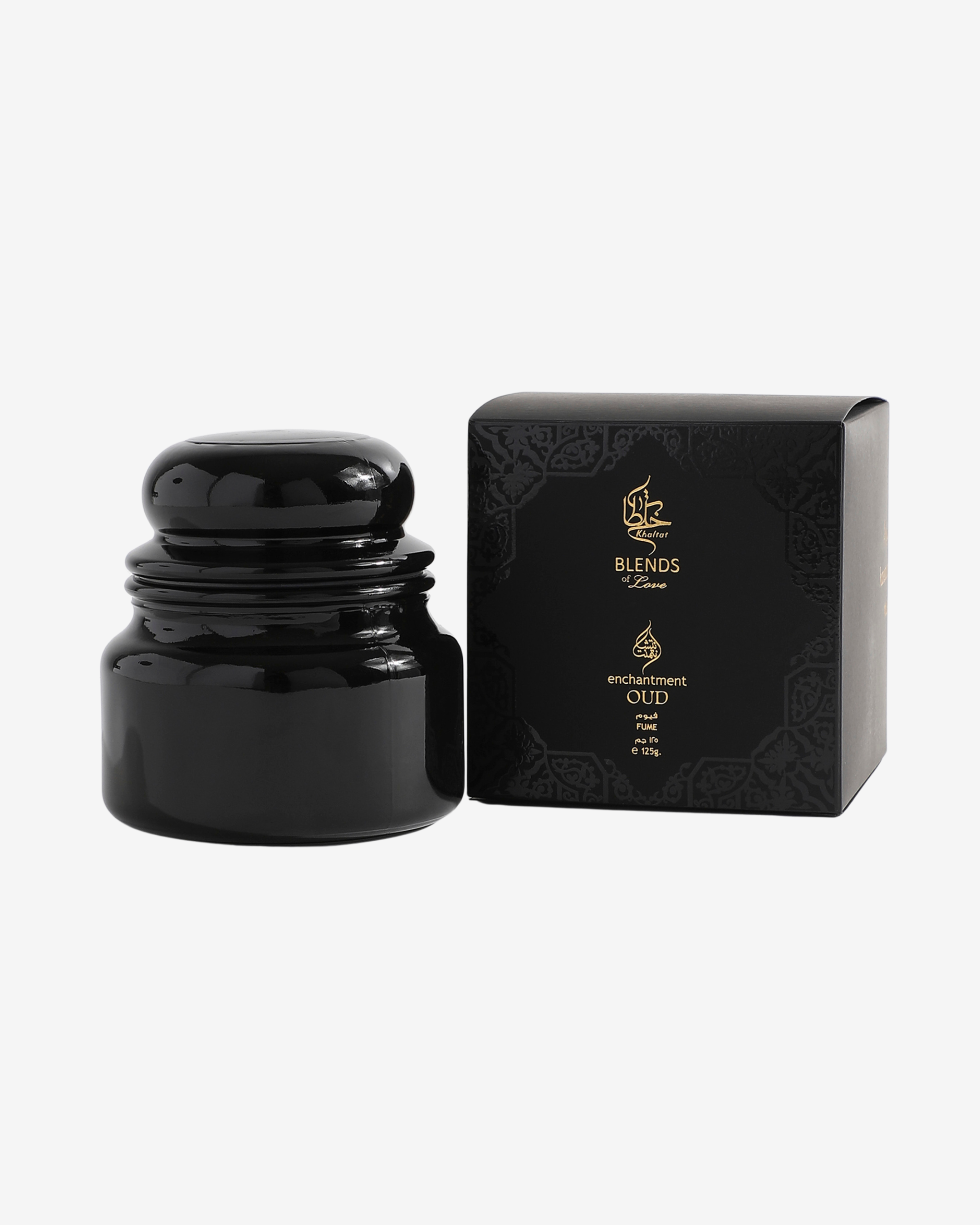 Enchanting, romantic, and comforting. Enchantment Oud is a gorgeously rich and warm fragrance. A concentrated elixir of extreme love, it is the only Khaltat scent to use Honey as a note, a sweet, golden autumnal note that illuminates the woody base note.